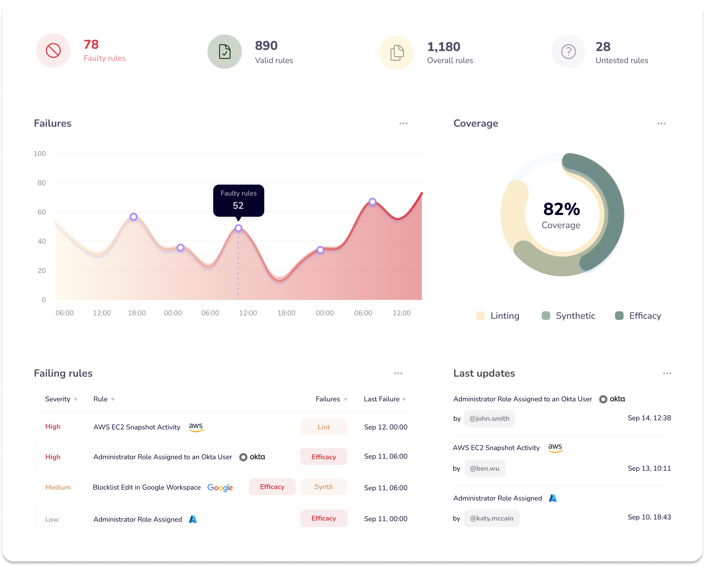 A plug-and-play service that connects directly to your SIEM and performs continuous QA checks on the detection rules.